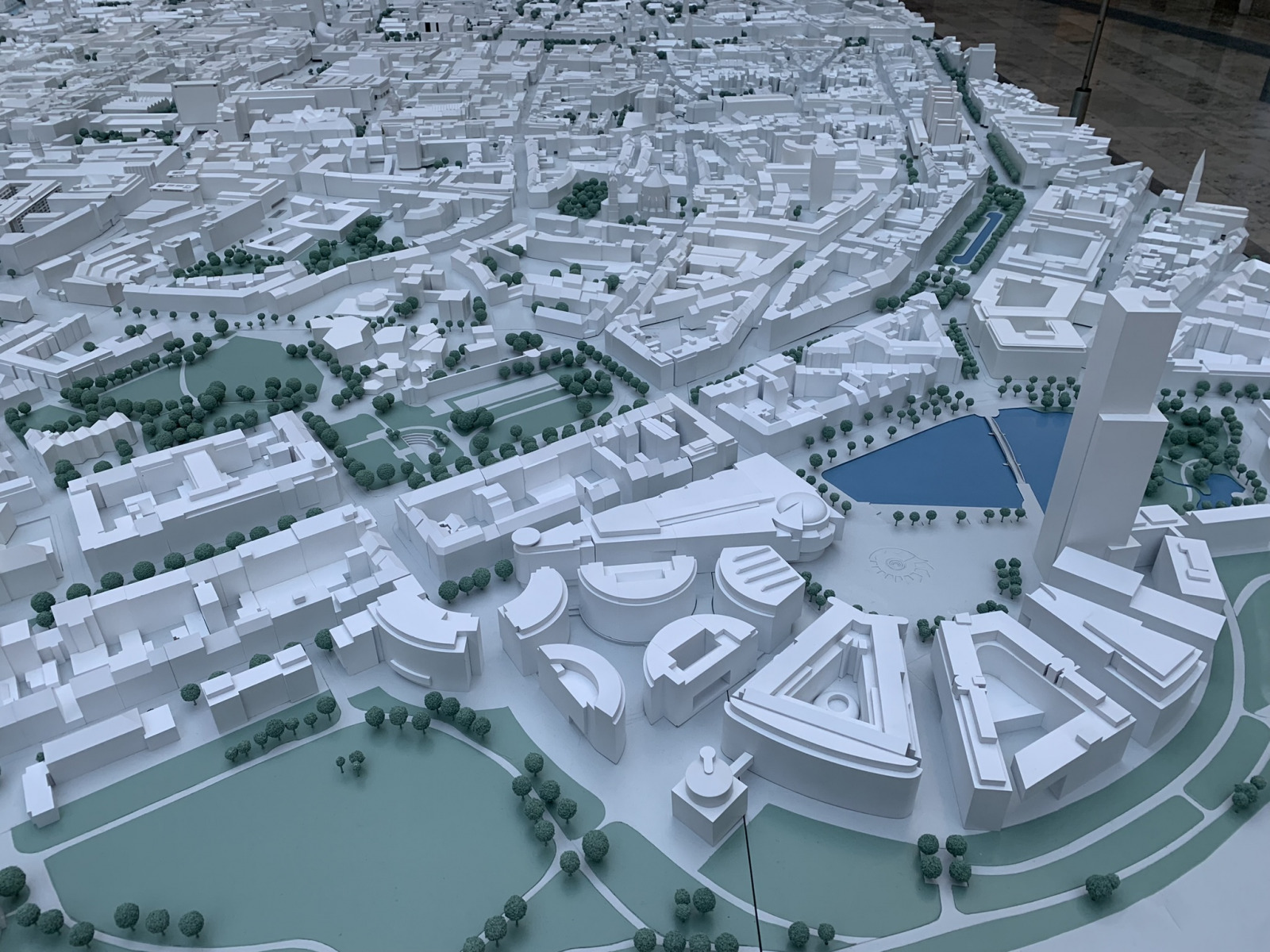 Im Modell wird die besondere Architektur sichtbar: Der Mediapark im Kölner Stadtmodell, Bild: Uli Kievernagel